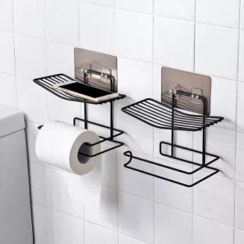 Wall Mounted Stainless Steel Soap & Sponge Holder – Double Tier Bathroom Shelf