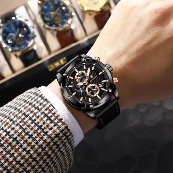 Men’s Luxury Chronograph Sport Watch – Leather Band, Waterproof & Luminous